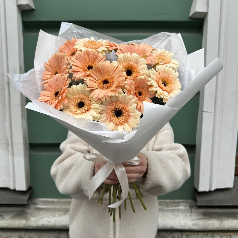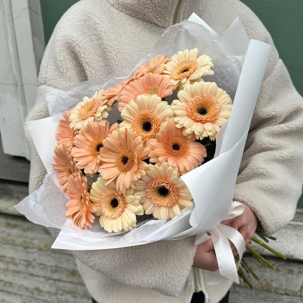 Букет гербера мини персиковая 15 шт в Немане