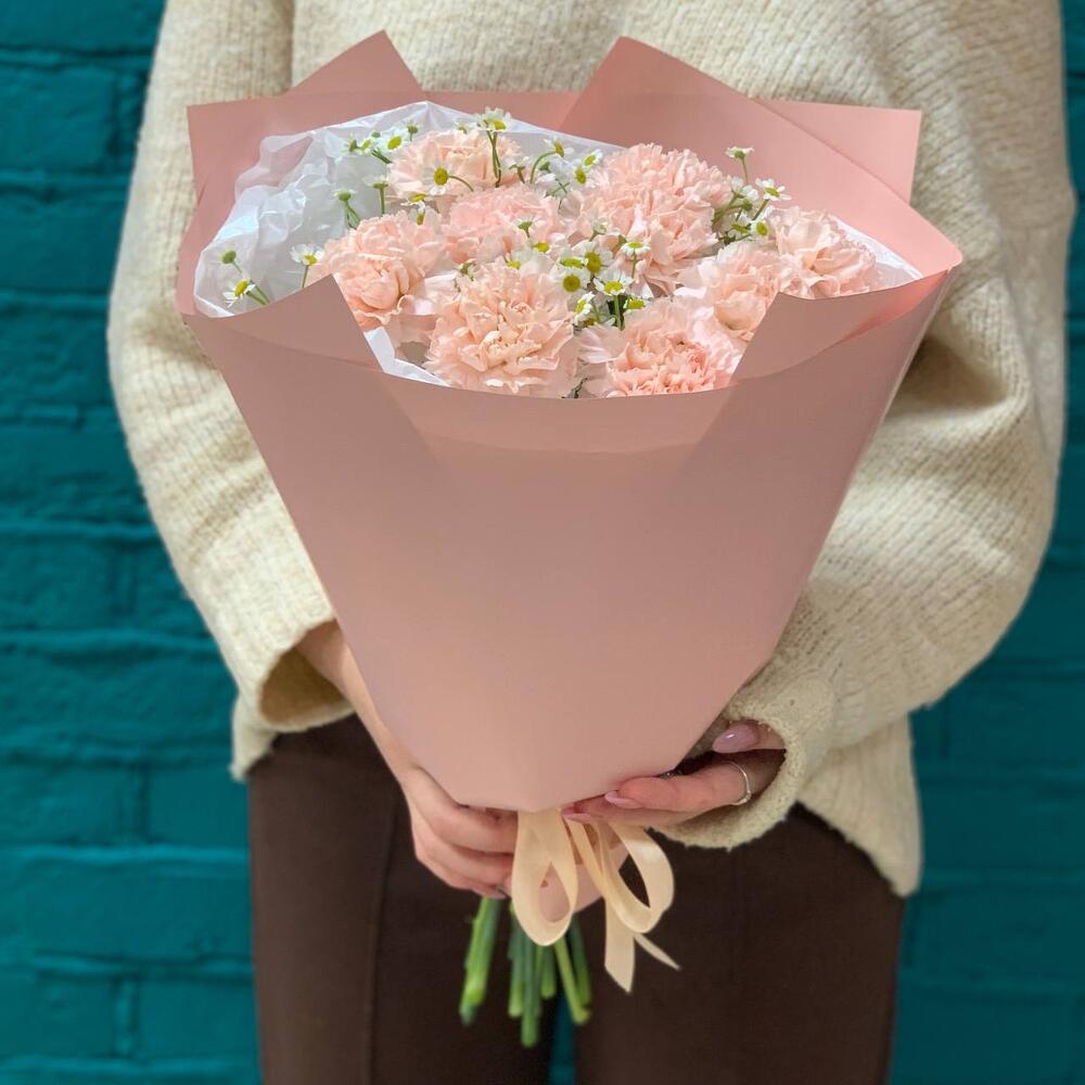 Букет из гвоздики (диантусов) и ромашки (танацетума) в Немане